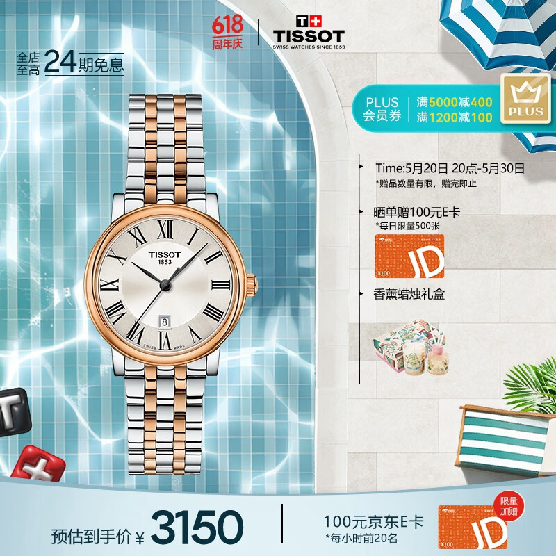 天梭(TISSOT)手表 卡森臻我系列钢带石英女表 520送女友T122.210.22.033.01价格:3500.00元!