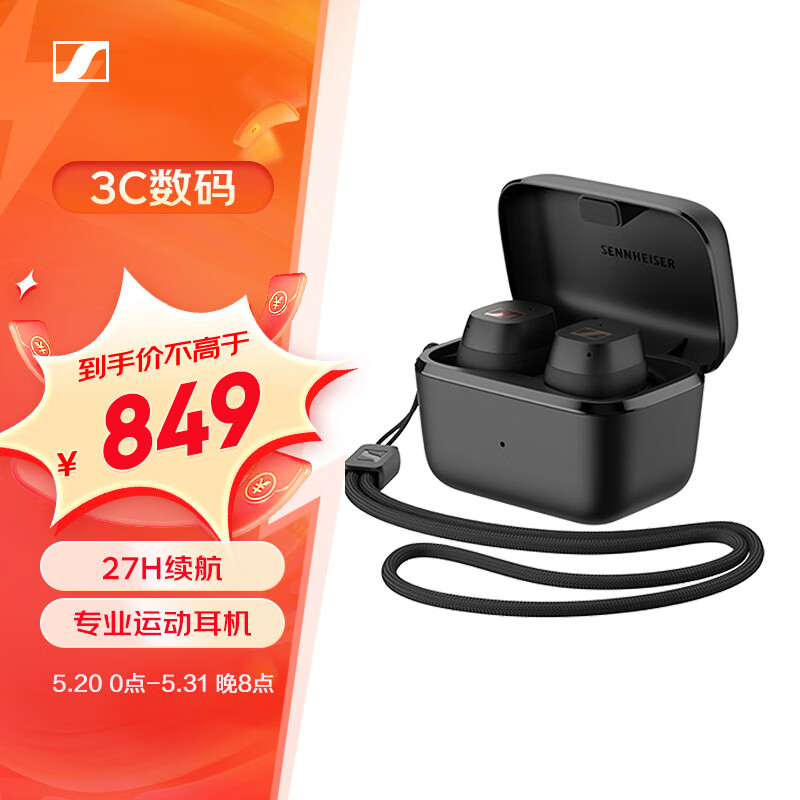 森海塞尔(Sennheiser)SPORT 真无线 音乐耳机蓝牙5.2自适应声学系统 运动耳机 黑色价格:849.00元!