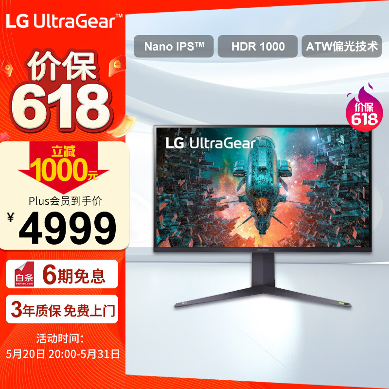 LG 31.5英寸 NanoIPS 4K HDR1000 160Hz(O/C) HDMI2.1 VRR ATW偏光技术 游戏 电竞显示器32GQ950价格:5399.00元!