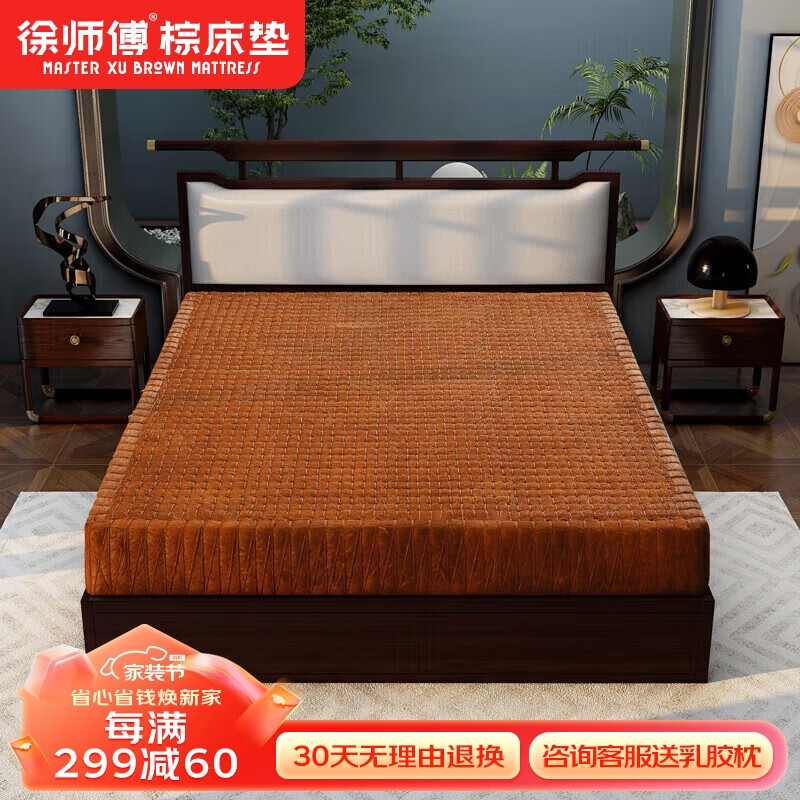 徐师傅 全手工山棕床垫硬棕垫薄厚款榻榻米床垫定制折叠 1.8*2米价格:2775.00元!