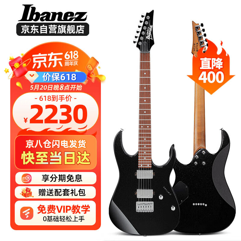 Ibanez依班娜电吉他GRG121SP-BKN 闪黑色 初学者入门新手男女吉他套装价格:2630.00元!
