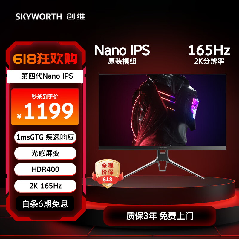 创维 27英寸 Nano IPS 2K 165Hz 1ms HDR400 Type-C 智能光感 旋转升降 电竞显示器F27G50Q Pro价格:1499.00元!