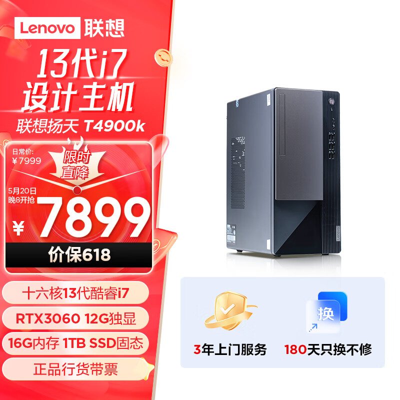 联想(Lenovo)T4900k 设计师游戏商用台式电脑主机(13代酷睿i7-13700 RTX3060 12G 16G 1TB SSD)价格:7899.00元!