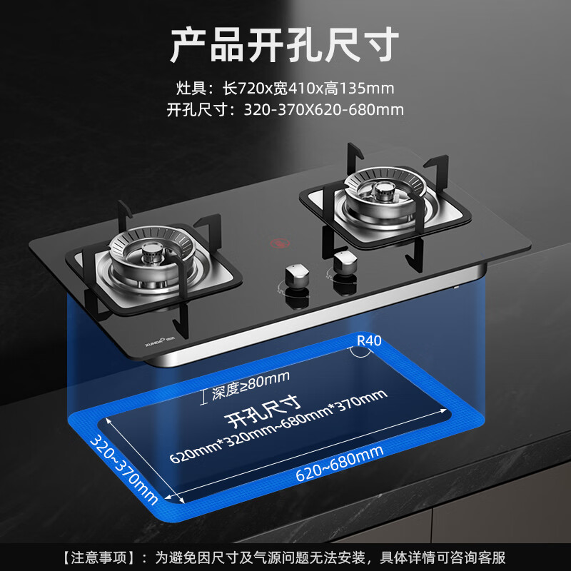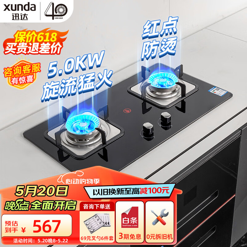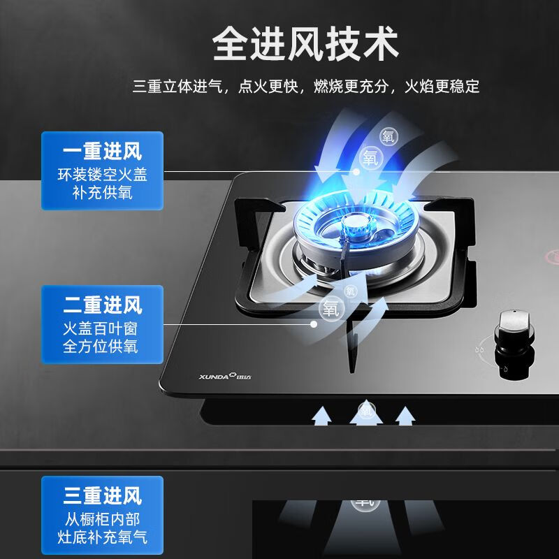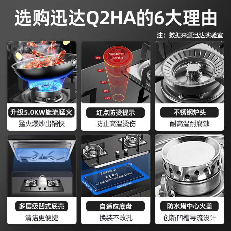 迅达(XUNDA)燃气灶天然气灶家用 双灶具灶台 嵌入式台式两用 5.0KW旋流猛火灶 红点防烫 Q2HA-天然气价格:567.00元!