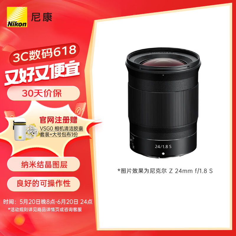 尼康 (Nikon) 尼克尔 Z 24mm f/1.8 S全画幅微单广角定焦镜头 风景/旅游价格:6299.00元!