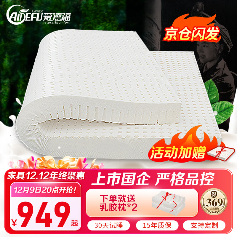 爱德福乳胶床垫泰国进口天然乳胶 榻榻米单双人垫 1.8米*2米价格:1099.00元!