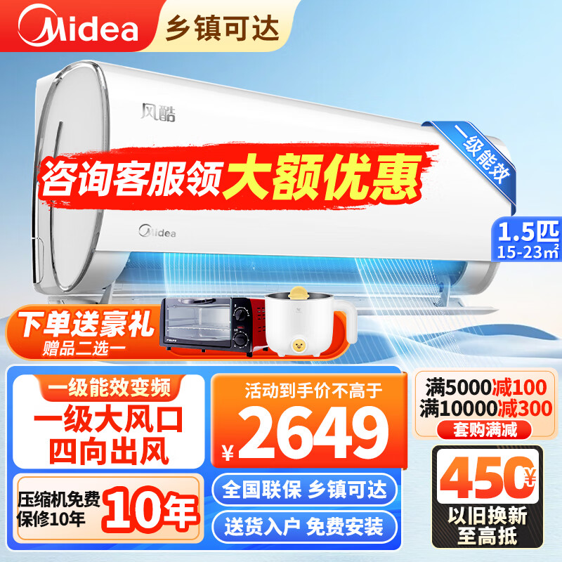美的(Midea)空调挂机1.5匹 风酷新一级能效变频冷暖家用省电 卧室壁挂式空调 以旧换新KFR-35GW/N8XHC1Ⅱ智选价格:2649.00元!