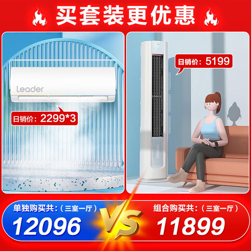 Leader空调海尔出品大3匹立式空调1.5匹挂机新一级能效变频冷暖自清洁柜机家用空调套装LKB+MUE[家电]价格:11899.00元!