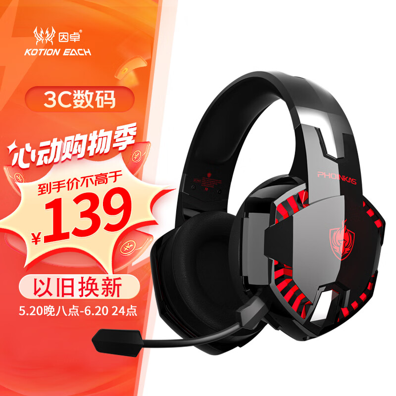 因卓(KOTION EACH)G2000Pro游戏耳机头戴式无线蓝牙耳机7.1声道手机电脑笔记本吃鸡运动跑步音乐有线电竞耳麦带话筒价格:159.00元!