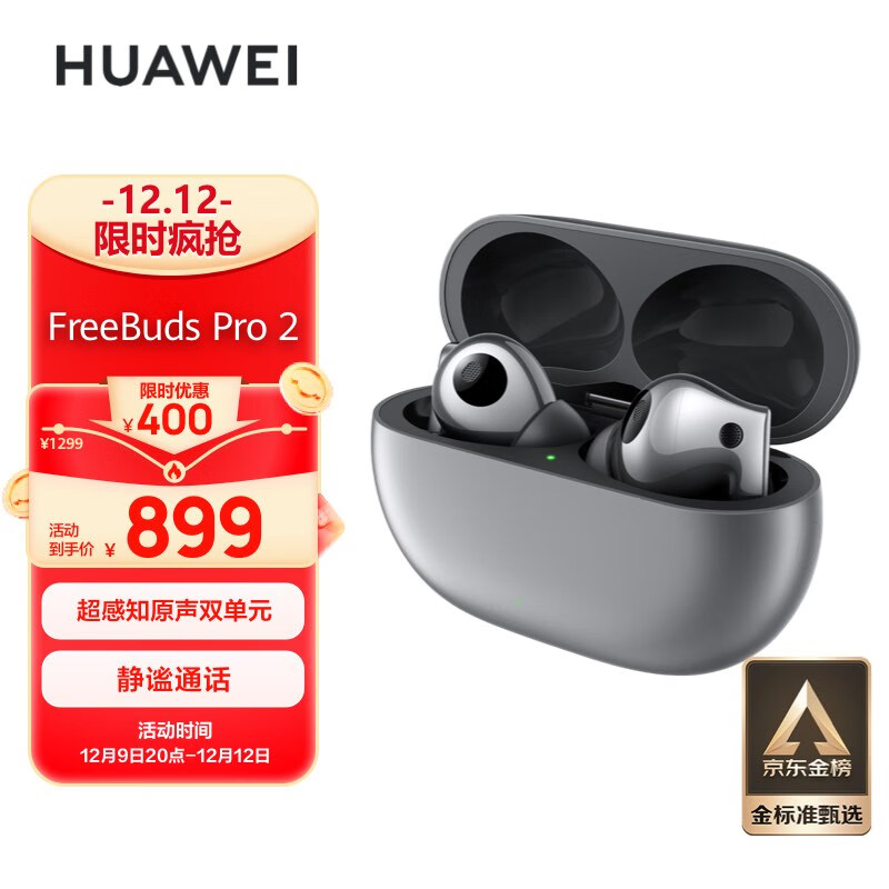 华为FreeBuds Pro 2 帝瓦雷联合调音 蓝牙耳机 主动降噪入耳式游戏音乐耳机 适用苹果安卓手机 冰霜银价格:899.00元!