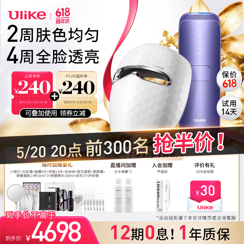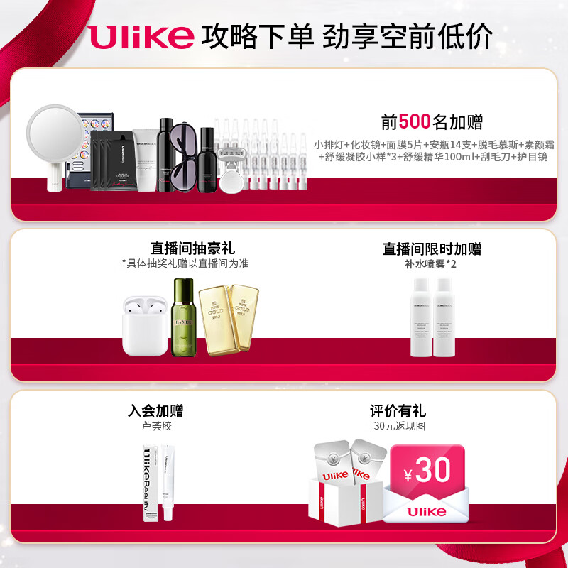 Ulike蓝宝石冰点脱毛仪激光剃毛器 白皇后大排灯美容仪 Air3水晶紫+白皇后面罩套装 送女友520礼物价格:4898.00元!