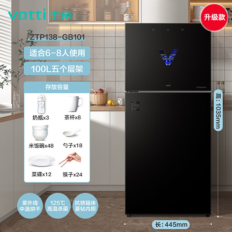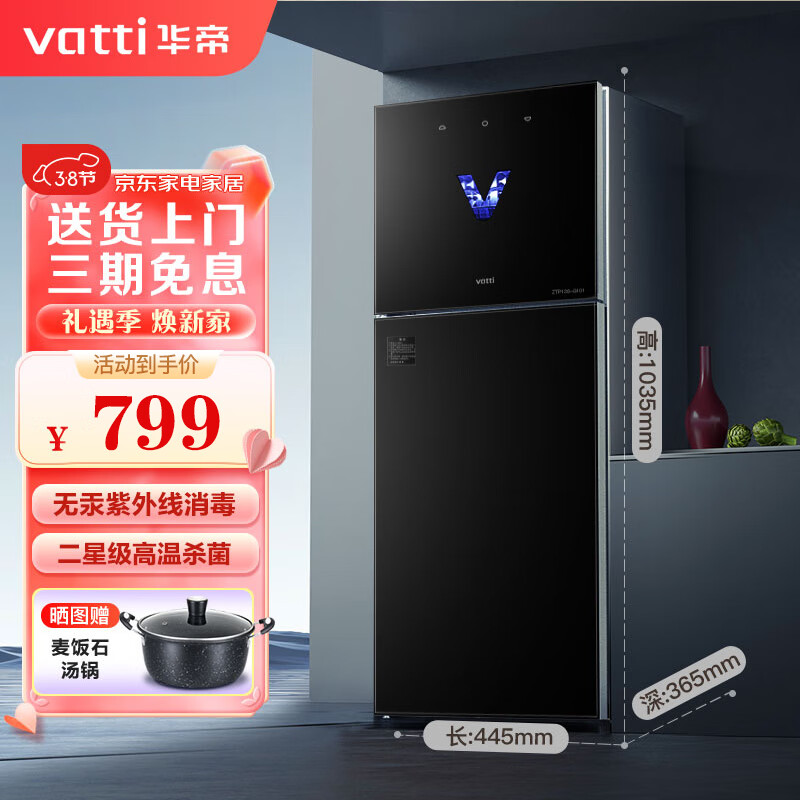 华帝(VATTI)消毒柜立式家用小型不锈钢 厨房餐具碗筷母婴儿奶瓶 紫外线高温消毒碗柜 ZTP138-GB101价格:869.00元!