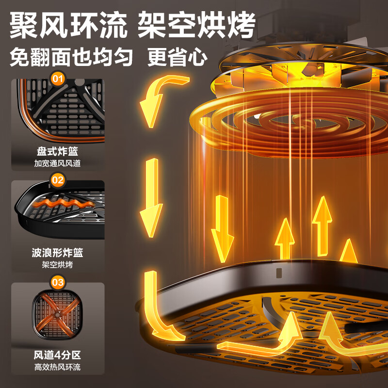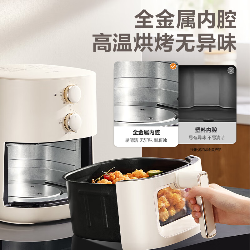 苏泊尔(SUPOR)免翻面空气炸锅 不用翻面 家用5L大容量 双热源炸鸡薯条机蒸汽嫩炸 金属内腔可视炸锅 KJ50D881价格:299.00元!