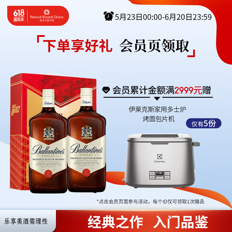 百龄坛(Ballantine`s)特醇 苏格兰 调和型 威士忌 1000ml*2 对象连环催礼盒价格:256.00元!