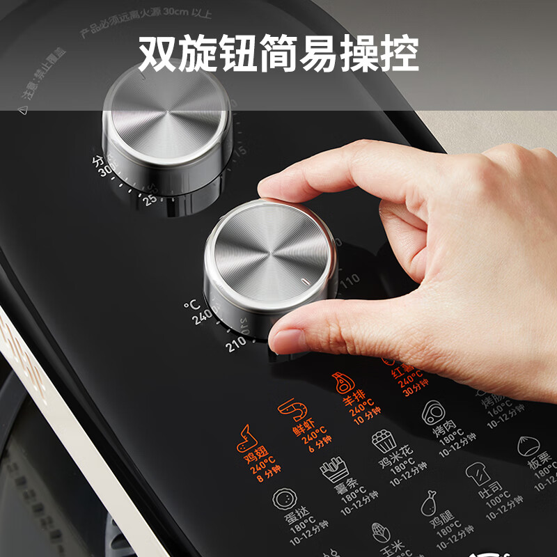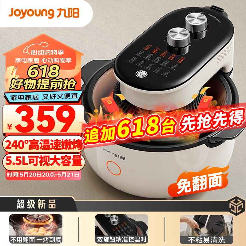 九阳(Joyoung) 蒸汽嫩烤 不用翻面 可视大容量5.5L 双旋钮控温控时 无油嫩炸 烤箱薯条机KL55-V0Fast价格:359.00元!