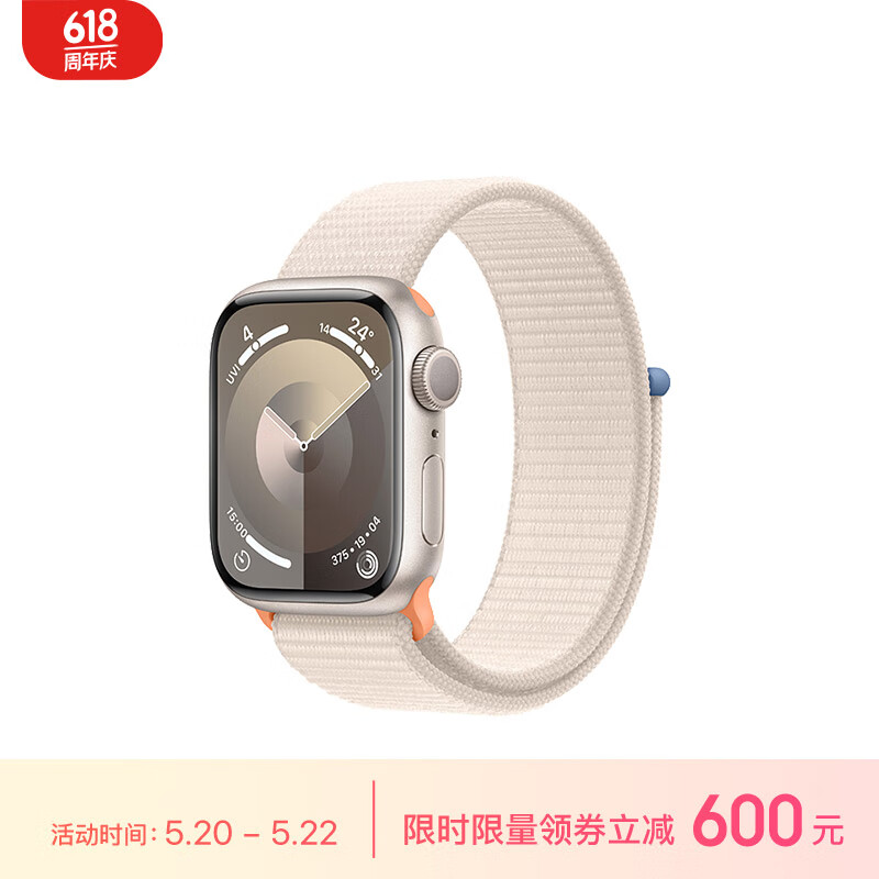 Apple/苹果 Watch Series 9 智能手表GPS款41毫米星光色铝金属表壳 星光色回环式运动表带 MR8V3CH/A价格:2999.00元!