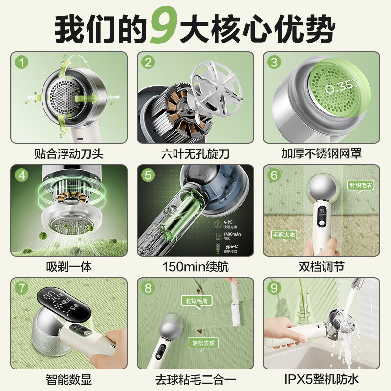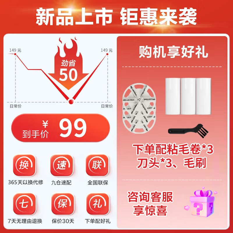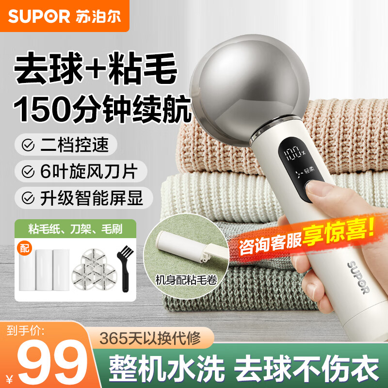 苏泊尔(SUPOR)毛球修剪器充电式多刀头吸剃一体去毛球器衣服起球粘毛家用剃球器A3(含刀头*3+粘毛卷*3)价格:99.00元!