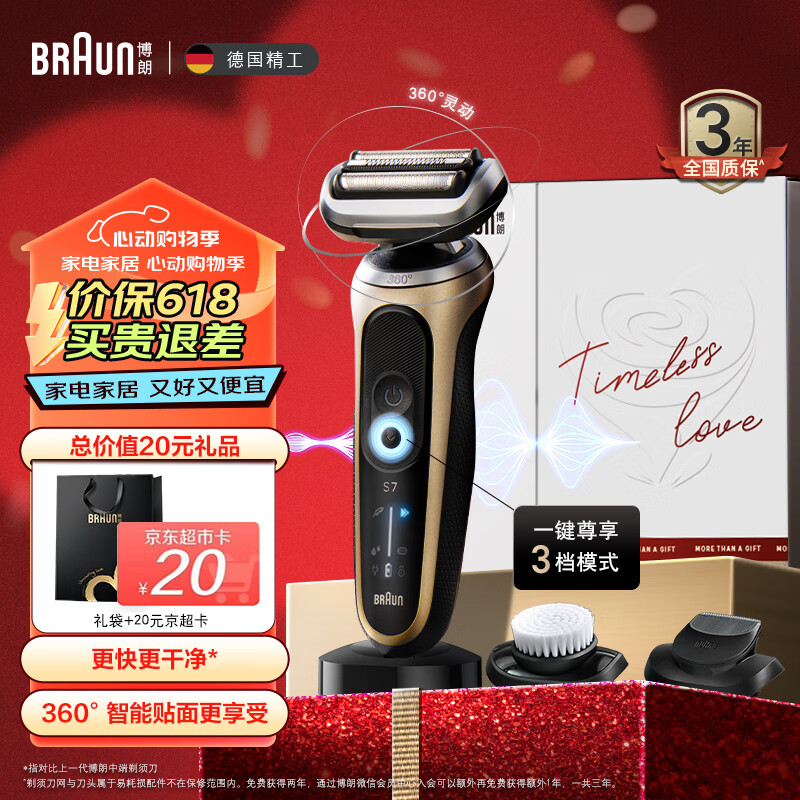 博朗(BRAUN)520礼物送男朋友7系Pro多功能钛金色礼盒款电动剃须刀整机德国进口往复式刮胡刀男士生日礼物价格:999.00元!