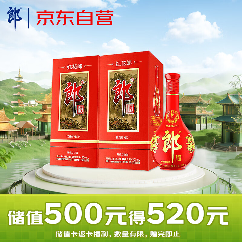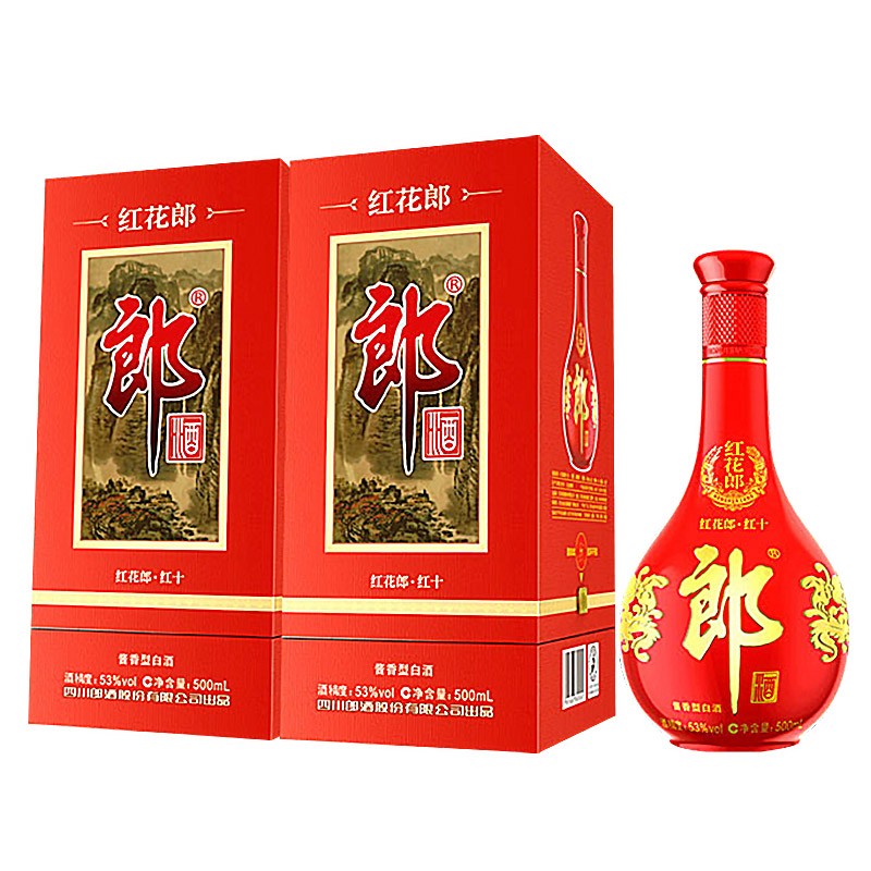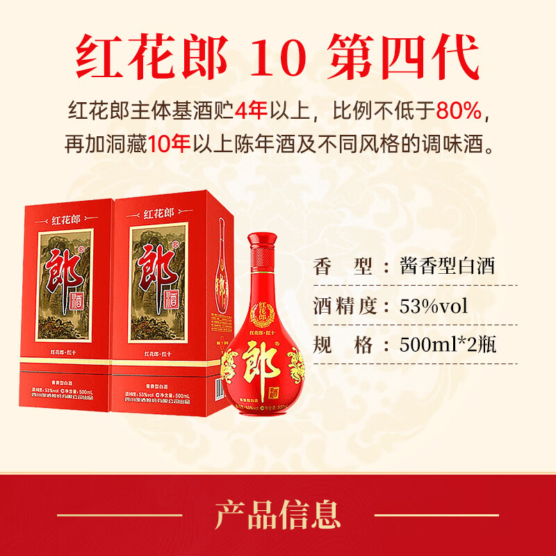 郎酒 红花郎10 第四代 酱香型白酒 53度 500ml*2瓶 双瓶装价格:790.00元!
