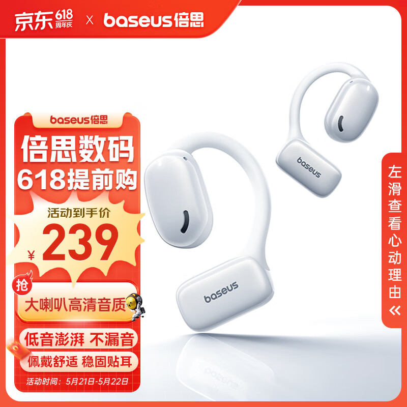 倍思 AG20 开放式蓝牙耳机不入耳骨传导概念挂耳式舒适运动跑步通话降噪长续航 白价格:329.00元!