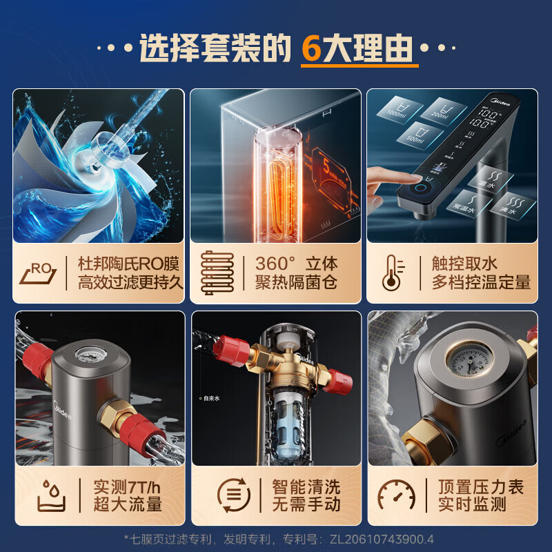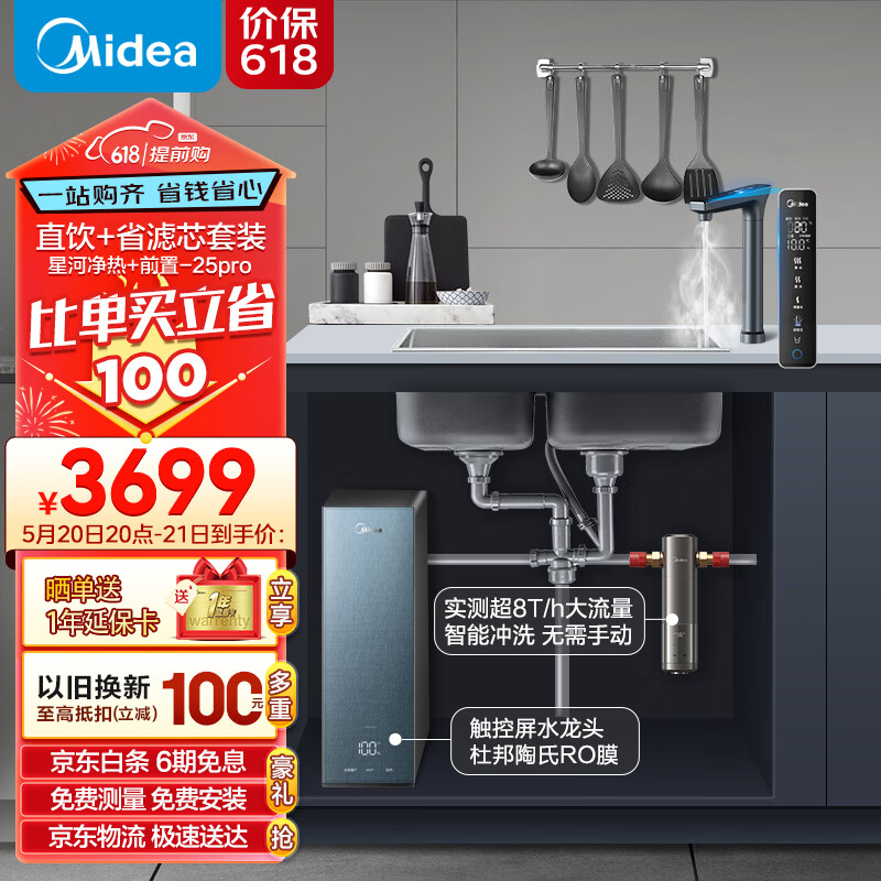 美的(Midea)省芯直饮套装【星河加热净水器+前置过滤器-25pro】厨下式智能水龙头 RO反渗透家用即滤一体净饮机价格:3699.00元!