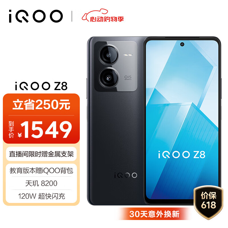 vivo iQOO Z8 12GB+256GB 曜夜黑 天玑 8200 120W超快闪充 5000mAh超长续航 5G电竞手机价格:1799.00元!