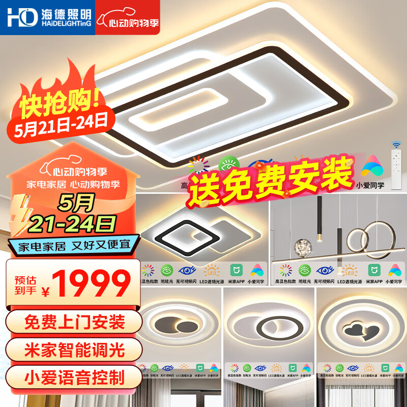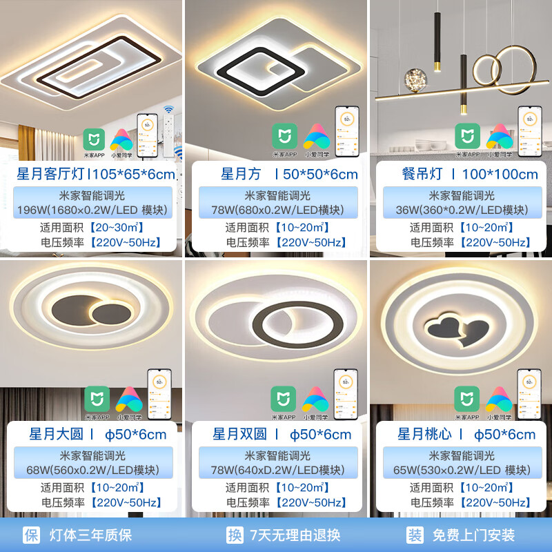 HD米家智能AI语音吸顶灯 led大客厅卧室全屋灯饰 包安装灯具套餐P价格:2499.00元!