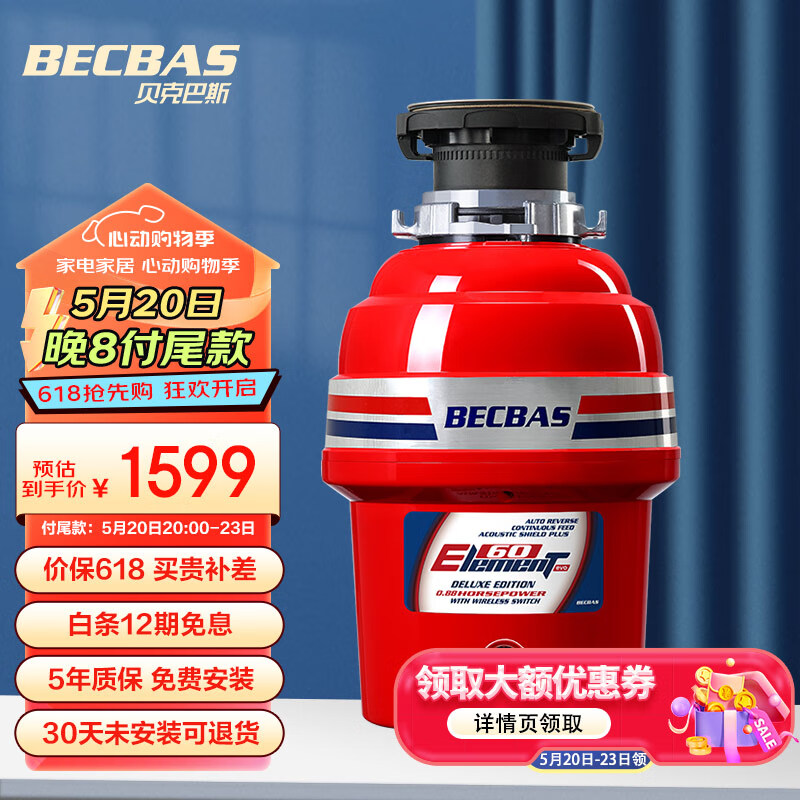 贝克巴斯贝克巴斯(BECBAS)垃圾处理器厨房厨余粉碎机 可接洗碗机 Element60(E60)价格参考: