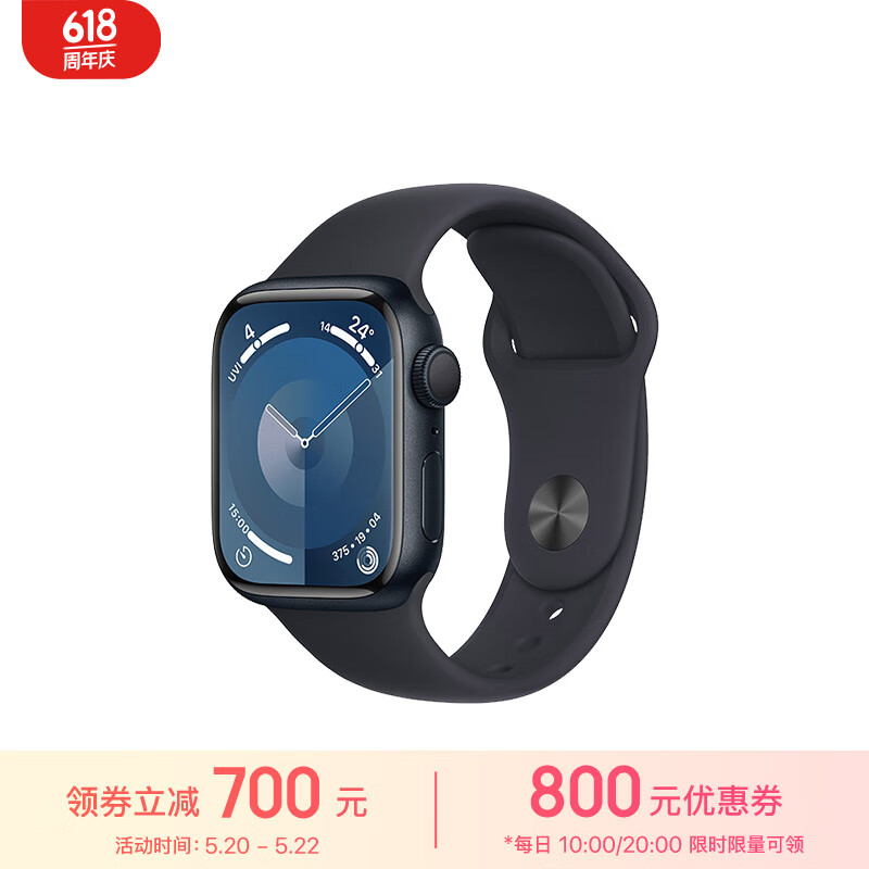 Apple/苹果 Watch Series 9 智能手表GPS款41毫米午夜色铝金属表壳 午夜色运动型表带S/M MR8W3CH/A价格:2999.00元!