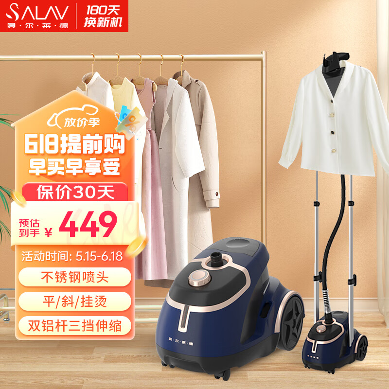 贝尔莱德(SALAV)挂烫机家用 蒸汽熨烫机 手持熨斗 烫衣机大水箱GS46-BJ/W(青色)价格:498.00元!