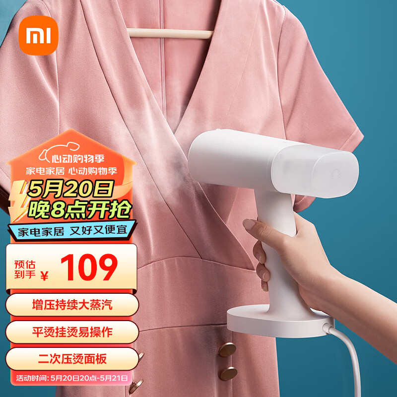 米家小米手持挂烫机 蒸汽电熨斗熨烫机 家用便携 除菌除螨 除皱不伤衣MJGTJ01LF价格:109.00元!