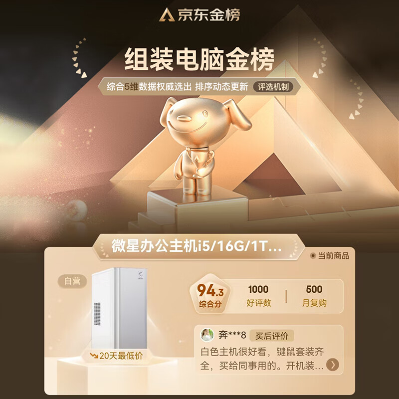 微星 设计师P60办公台式电脑(12代i5-12450H 16G 1TBSSD 商务键鼠 WiFi6)商用全套diy组装整机单主机价格:2507.00元!