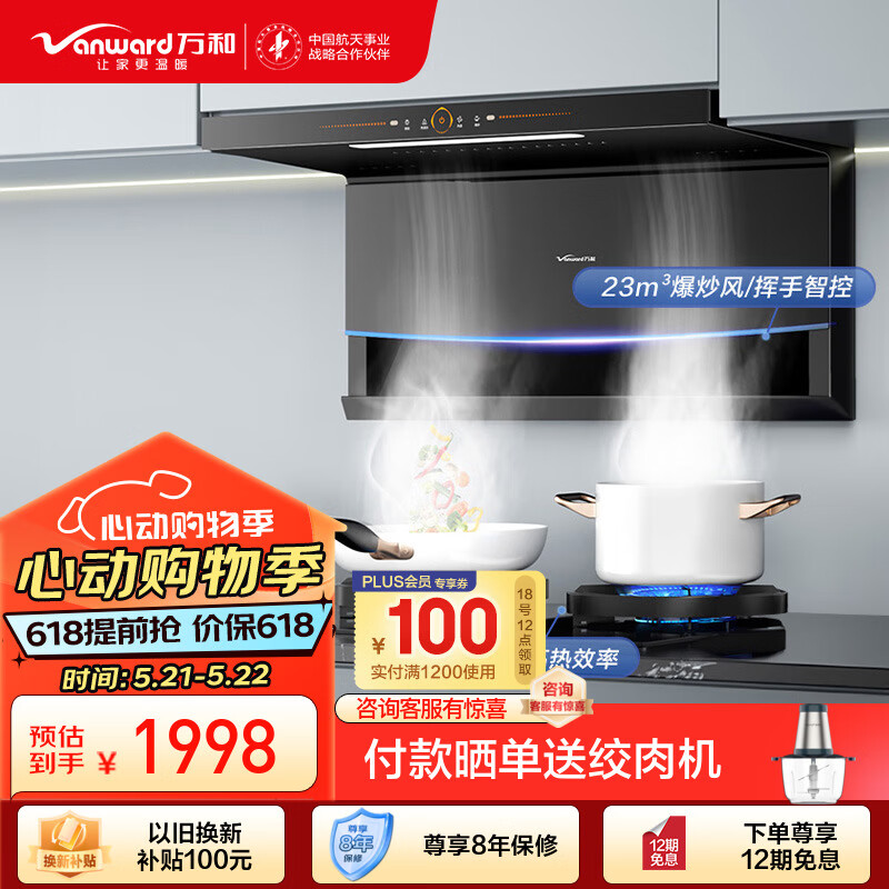 万和(Vanward)顶侧双吸7字型家用抽油烟机 68%高热效燃气灶具烟灶套装 23m3/min大吸力WL856+G6L50(液化气)价格:2198.00元!