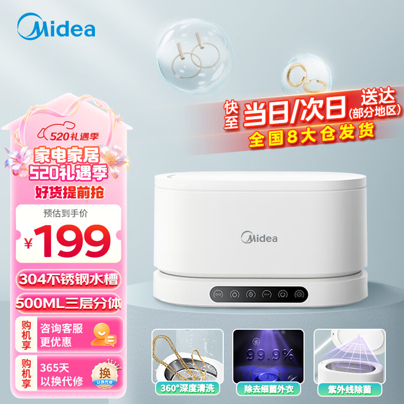 美的(Midea)超声波清洗机 眼镜清洗机 超声波洗眼镜 首饰剃须刀手表假牙牙套化妆刷 洗眼镜机超声波 MXV-01价格:199.00元!