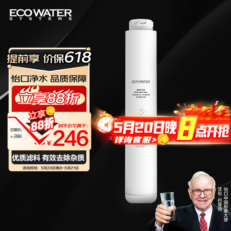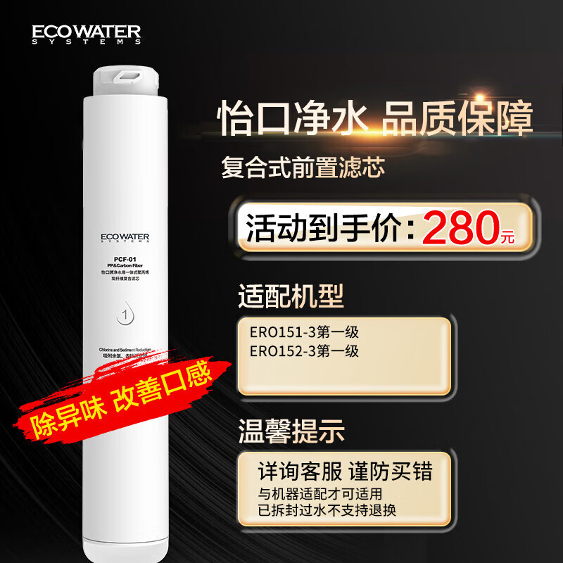 怡口净水(ECOWATER) 聚丙烯炭纤维复合滤芯PCF-01 适用ERO151-3 ERO152-3系列价格:246.00元!