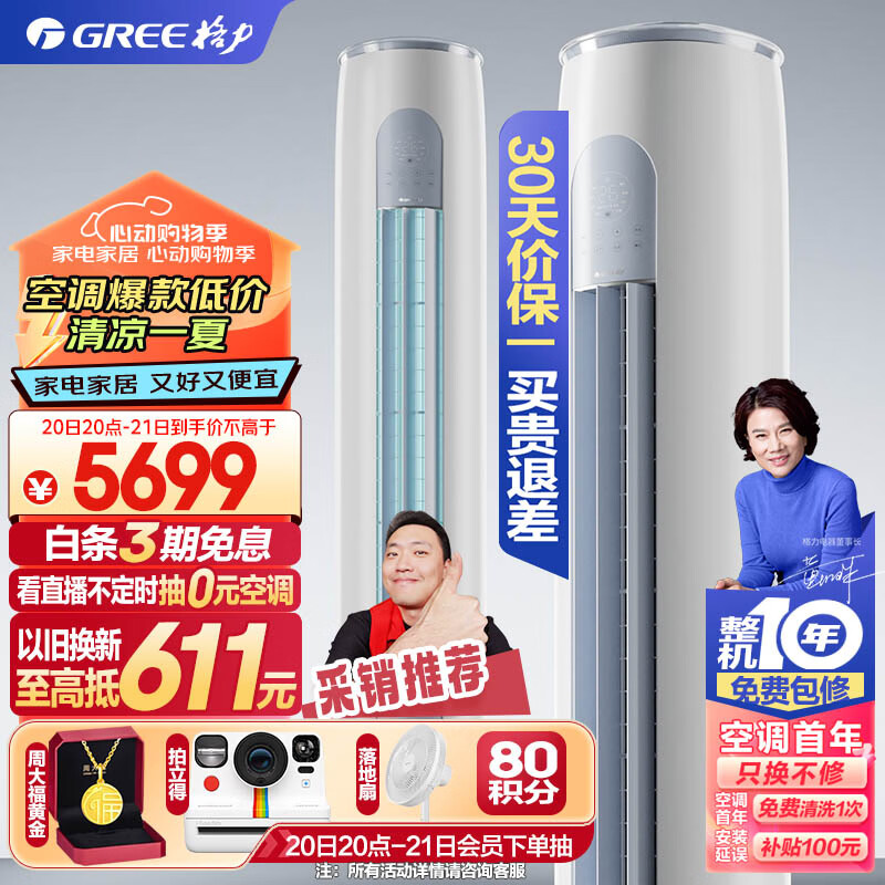 格力(GREE)空调 京东小家智能生态 2匹 云逸-Ⅱ 1级能效 客厅空调立式空调柜机KFR-50LW/NhGm1BAj价格:5699.00元!