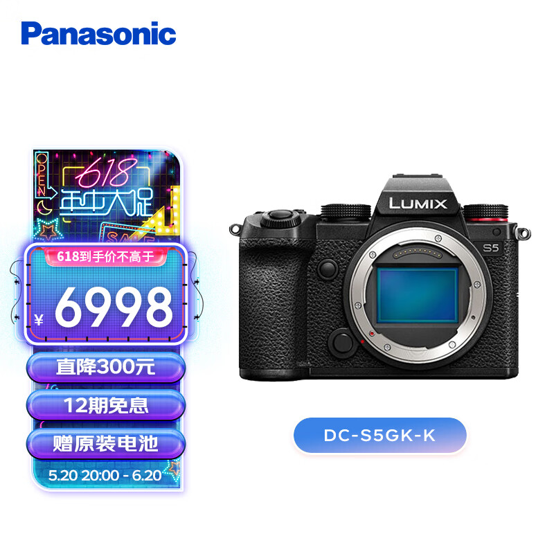 松下S5(Panasonic)全画幅微单相机 数码相机 约2420万有效像素 5轴防抖 双原生ISO V-Log内置价格:6998.00元!