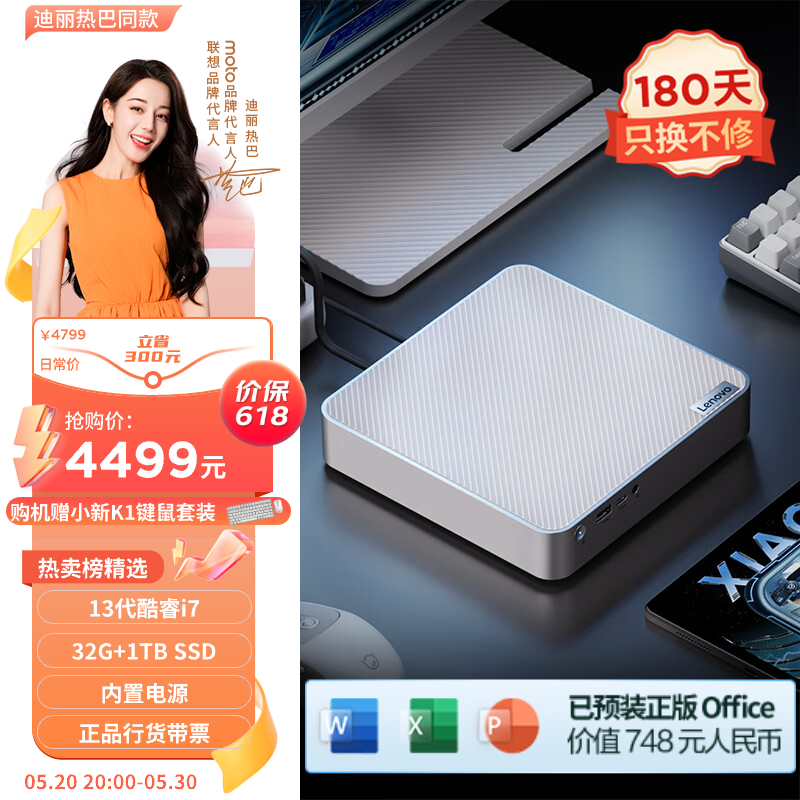 联想(Lenovo)小新mini口袋迷你主机高性能商务台式机电脑(酷睿13代i7-13700H 32G 1TB高速固态硬盘)价格:4499.00元!