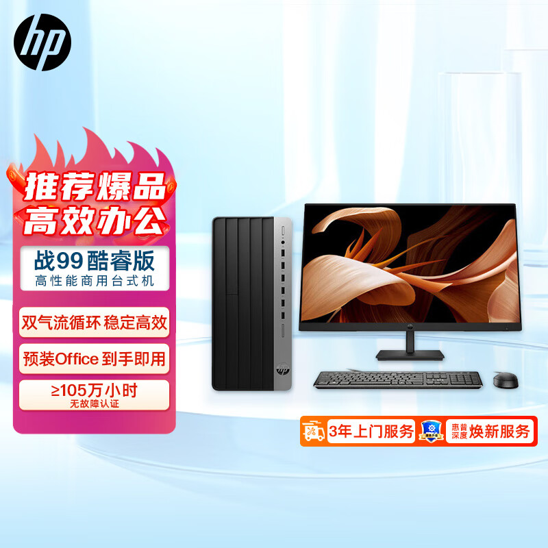 惠普(HP)战99 商务办公 教育学习台式电脑主机大机箱(酷睿版12代i3-12100 8G 512G)27英寸显示器价格:3399.00元!