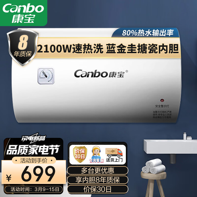 康宝(Canbo)80升电热水器 2100W下潜加热 防电墙整机 家用厨房卫生间 储水式 CBD80-2.1WAFE05价格:699.00元!