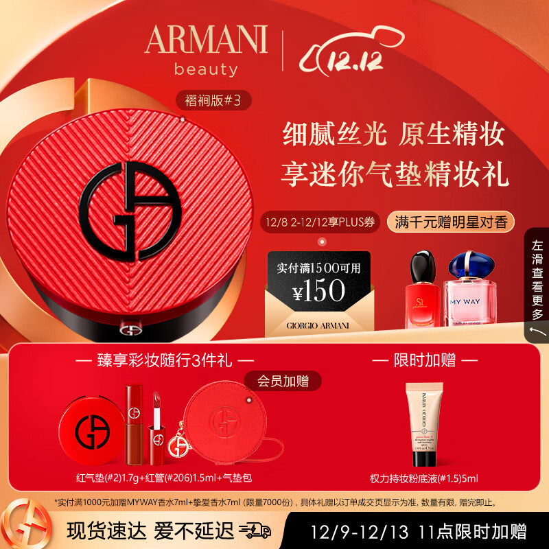 阿玛尼红气垫褶裥#3自然白 遮瑕持妆防晒粉底液 礼盒圣诞礼物送女友价格:685.00元!