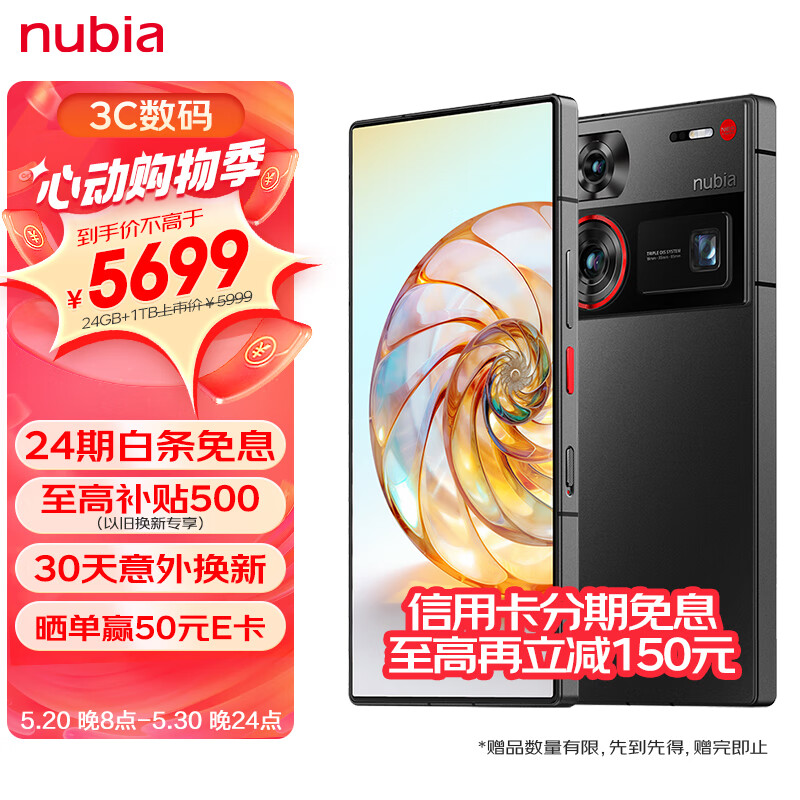 nubia努比亚Z60Ultra屏下摄像24GB+1T 星曜 第三代骁龙8 三主摄OIS+6000mAh长续航 5G中兴手机游戏拍照价格:5699.00元!