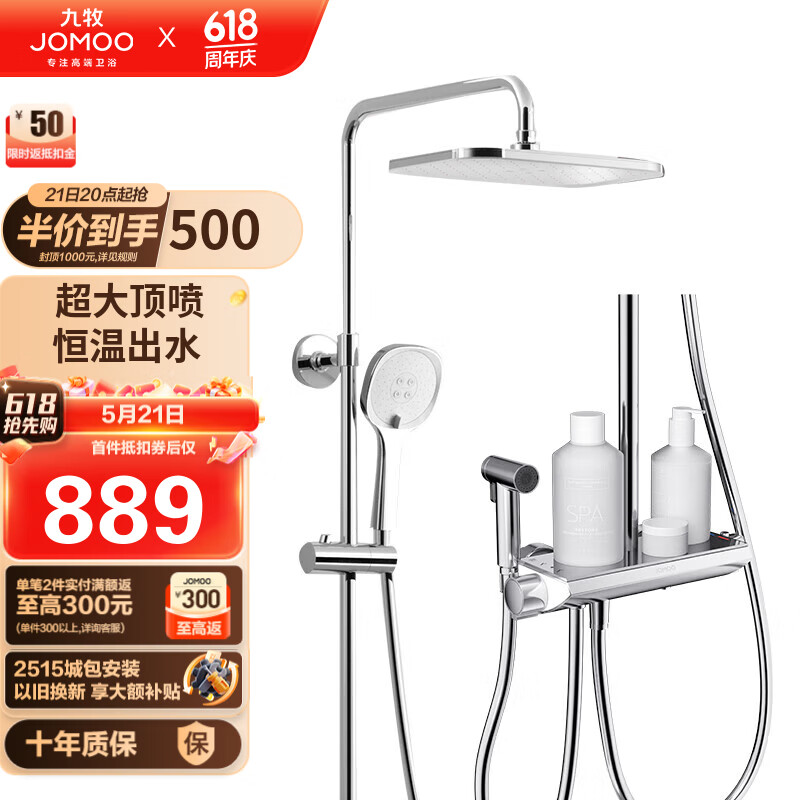 九牧 JOMOO 淋浴花洒套装 除垢喷枪恒温淋浴器26168-644/1B-1价格:1149.00元!