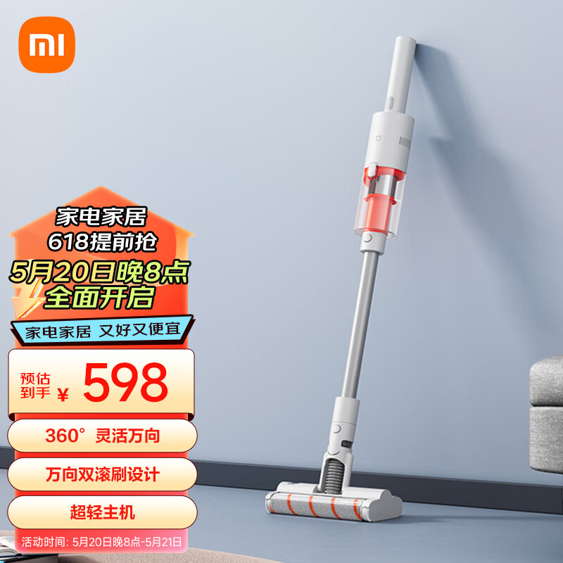 米家 小米无线双刷吸尘器 家用无线手持 万向双滚刷设计 轻量主机 长续航可除螨 年轻潮流价格:598.00元!