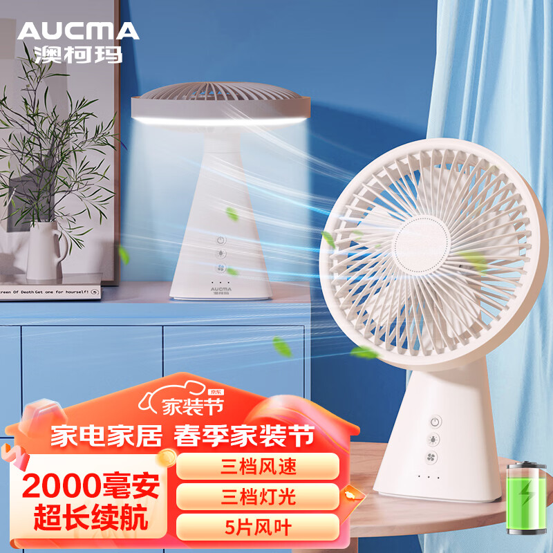 澳柯玛电风扇桌面台式小风扇迷你充电usb便携手持风扇家用宿舍办公室床头台夜灯蓄电FSS-W108J价格:131.00元!
