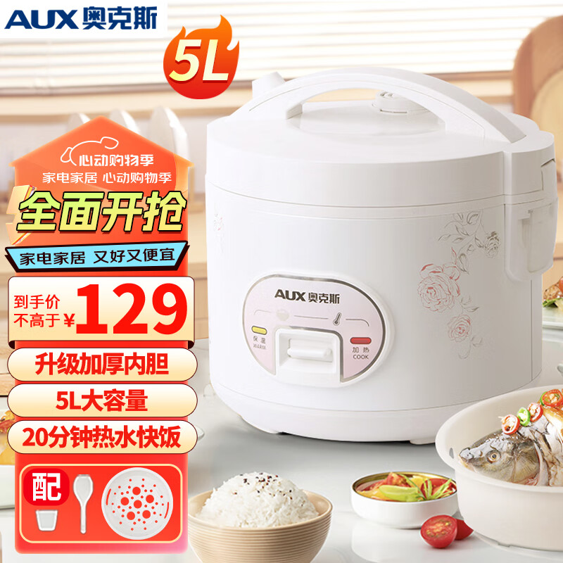 奥克斯(AUX)电饭煲 电饭锅 5L家用简易操作老式西施煲 小型电饭锅 5-8个人 VK-501X8价格:129.00元!