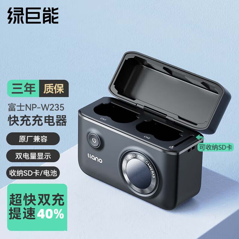 绿巨能(llano)富士NP-W235相机快充盒XT-5电池XT4/GFX100S/GFX50SⅡ/XH2S相机电池快充可收纳双充数显充电器价格:199.00元!