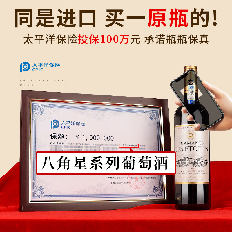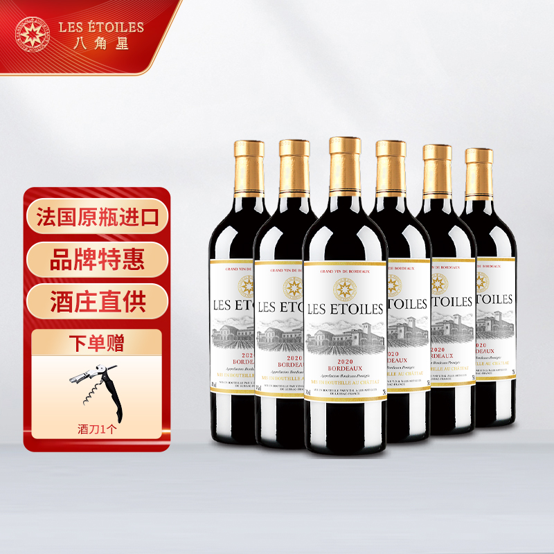 八角星法国原瓶进口AOC红酒年货送礼整箱 干红葡萄酒礼盒装750ml*6瓶价格:558.00元!