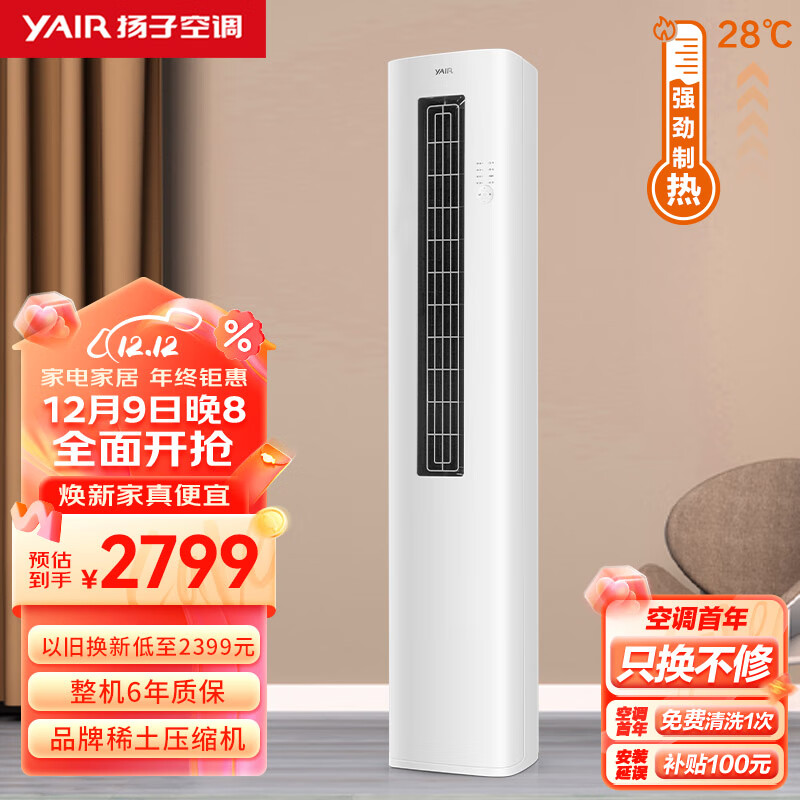 扬子空调 2匹 新三级能效 变频 冷暖 以旧换新 空调立式 客厅空调柜机 KFR-52LW/Q151fB3价格:2799.00元!