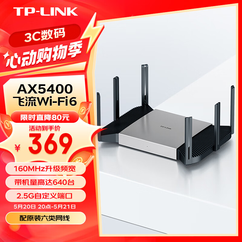 TP-link【飞流系列】 AX5400双频千兆无线路由器 WiFi6游戏路由 Mesh XDR5480易展Turbo版 2.5G自定义端口价格:369.00元!